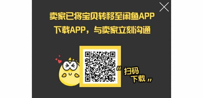 Voici un exemple sur TaoBao Xianyu, le message dit : "le vendeur a déplacé le produit sur l'APP XIAN YU. Téléchargez l'application maintenant et communiquez avec le vendeur".