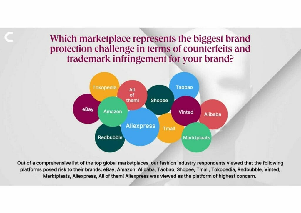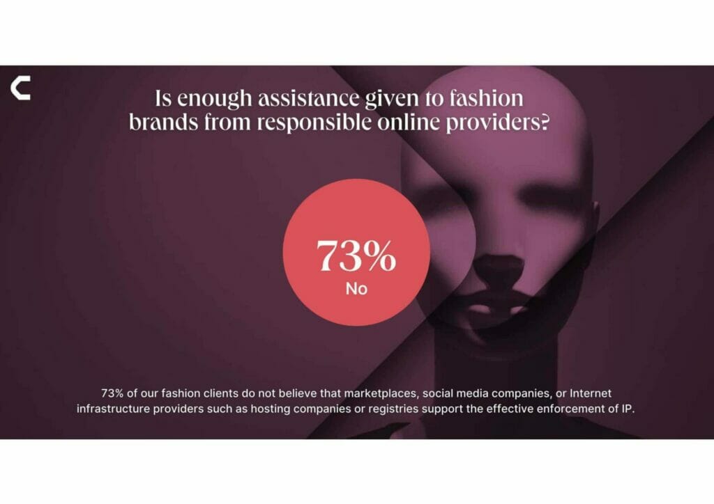 • 100 % der befragten Modemarken sind der Meinung, dass Marktplätze, Social-Media-Unternehmen und Internet-Infrastrukturanbieter nicht genug zum Schutz vor Fälschungen und anderen Formen der Rechtsverletzung tun.